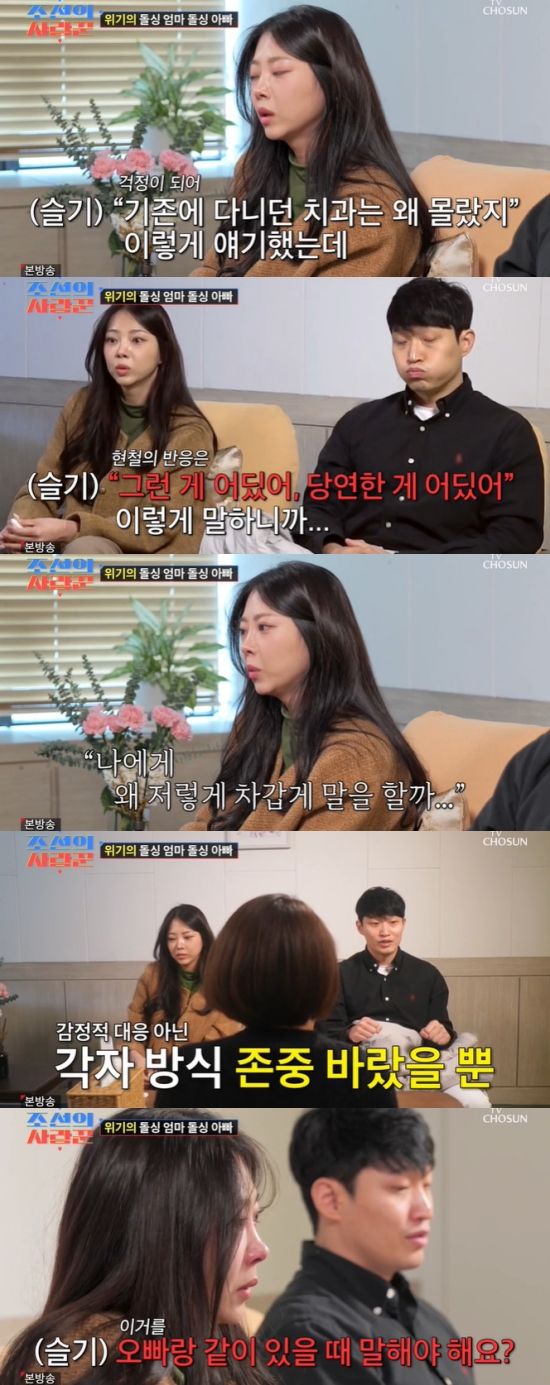 김슬기는 "내가 오빠한테 뭐라고 하는 게 아닌데 그냥 내가 얘기하는 거에 저렇게 말을 할까. '그런가? 왜 그랬지?' 이렇게 이야기할 수 있는 걸 '네가 아는 게 전부가 아니야' 이런 식으로 이야기를 하니까 무시당하는 기분이 들었다"라며 눈물 흘렸고, 유현철은 "아이들을 따로 키웠다. 서로 그 부분에 있어서 되게 예민한 부분이 아닐까. 그거야말로 감정이 들어가면 안 된다고 생각한다. 내가 뭘 실수해서 잘못한 일이 아니기 때문에"라며 털어놨다.