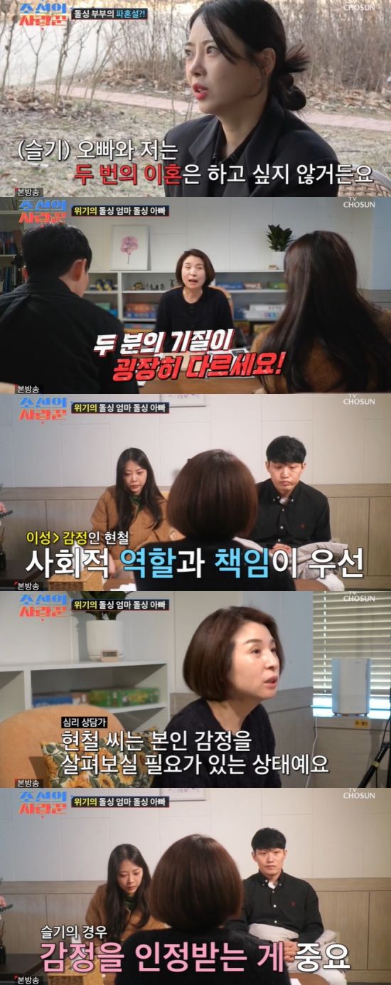 심리 상담가는 "우리 슬기 님은 상대방에게 나의 의견이나 감정이 받아들여지는지 안 받아들여지는지 굉장히 중요하다. 안 받아들여지면 굉장히 증폭되는 게 있다. 두 분이 약간 시너지가 나고 있는 상황이다. 슬기 님은 현철 씨한테 채워지지 않았던 마음을 채우기 위해서 '왜 안 채워지지?' 하면서 감정적으로 강렬하게 표현하는 방식을 취하고 있고 현철 씨는 그렇게 강렬하게 정서적인 요구가 들어오면 후퇴하고 철수하는 방식으로 가고 있다"라며 덧붙였다.