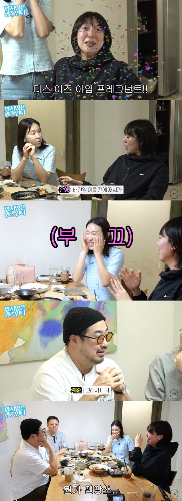 "은형이 임신했다"는 말로 축하를 시작한 이지혜는 눈물을 흘리는 모습을 보이기도 했다.