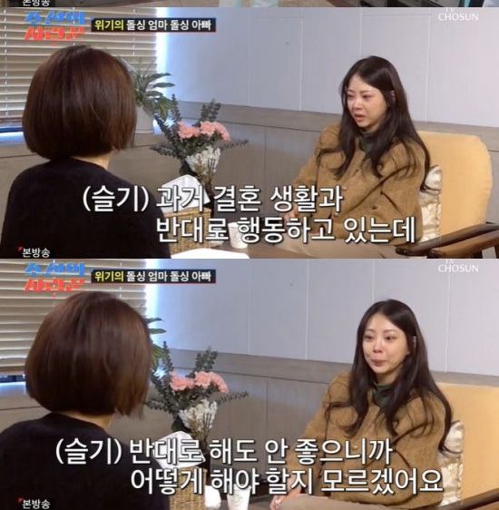 김슬기는 "이번에도 내 선택이 또 잘못됐다고 생각하면 되게 많이 힘들 거 같다. 괜찮아진 줄 알았다. 근데 안 괜찮은 거 같다. 가정을 다시 꾸리려고 하다 보니까 그런 게 올라오는 거 같다. 예전의 상황들이라든지. 이런 불화가 일어났을 때의 스트레스. 그때와 지금 정반대의 행동을 취하고 있는데 그때는 '이렇게 했기 때문에 이혼했다'가 있으니까 반대로 행동을 하고 있는데 반대로 해도 이 사람이랑 안 좋으니까 어떻게 해야 될지 모르겠다"라며 혼란스러워했다.