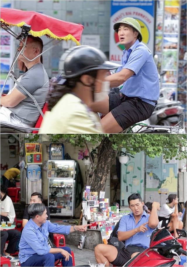 이처럼 화려한 현생을 살고 있는 김동현이 ‘눈떠보니 OOO’를 통해 별안간 하노이 한복판에서 N차 인생에 로그인한다. 김동현은 하노이에서 씨클로(인력거)를 운전하는 기사로서 현생과 180도 다른 인생을 맞이한다. 이와 관련해 공개된 현장 스틸 속 김동현은 씨클로를 운전하며 외국인 관광객들을 모시고 하노이 투어를 진행하고 있어 이목을 집중시킨다. 김동현은 현지에 최적화된 비주얼로 엄청난 허벅지 근육을 뽐내며 페달을 구르고 있지만, 그의 표정에서는 '멘붕'이 느껴질 정도로 지친 기색이 역력하다. 나아가 김동현은 선배 씨클로꾼에게 뭔가 하소연을 하기도 하는데, 응석받이 막내일꾼 같은 모습이 웃음을 자아낸다. 이에 피지컬 대결 못지않은 생고생을 예감케 하는 '하노이 씨클로꾼' 김동현의 N차 인생 적응기에 귀추가 주목된다.