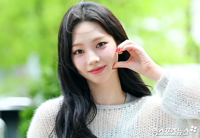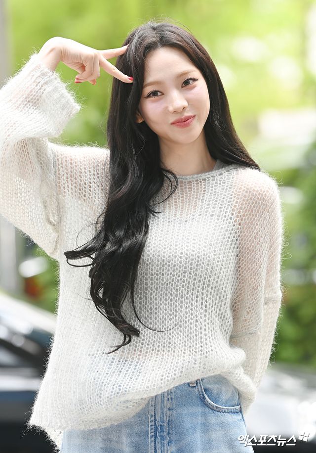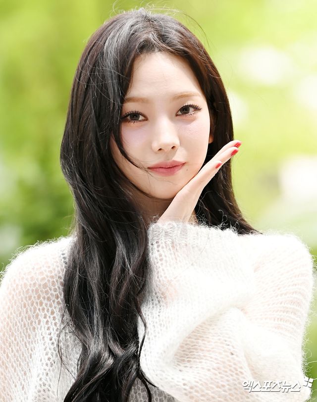이날 녹화에 참석한 에스파 카리나가 포즈를 취하고 있다.