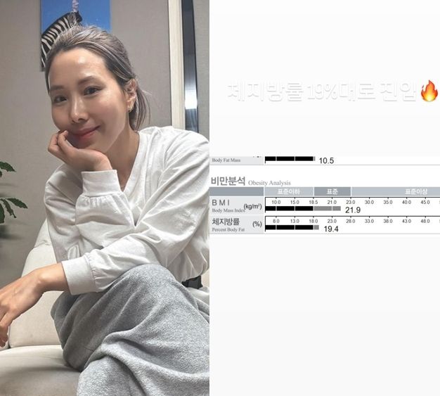 15일 신봉선은 "체지방률 19%대로 진입"이라는 글과 함께 사진 한 장을 게시했다.