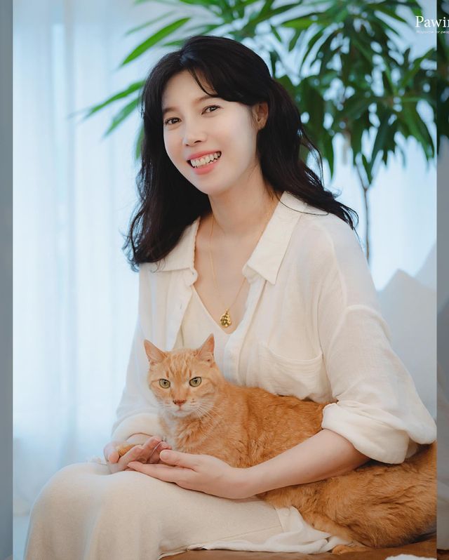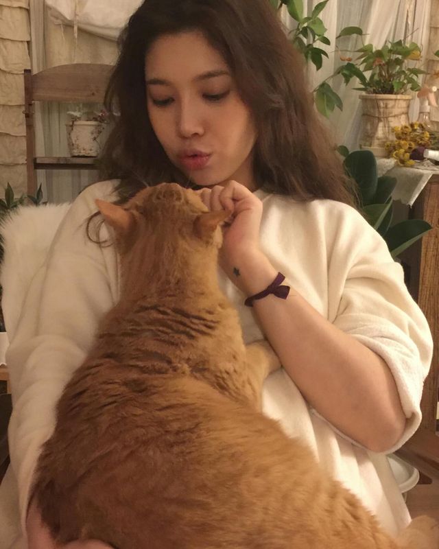 공개된 사진 속 배다해는 최근 세상을 떠난 반려묘 준팔이와 함께 단란한 한때를 보내는 모습이다.