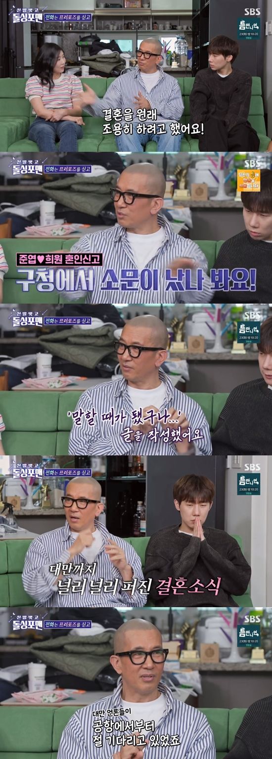 구준엽은 "희원이가 너무 유명한 배우라서 결혼을 원래 조용히 하려고 했다. 혼인 신고를 하자 구청에서 소문이 났나 보다. 매니저가 '형 결혼했냐'고 물어보더라"고 밝혔다.