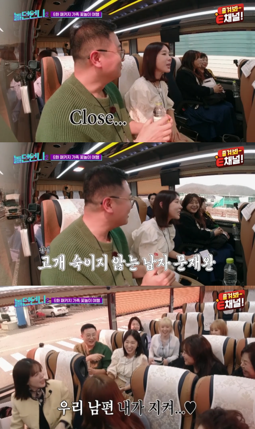 단체 버스 이동 중 아이비는 문재완에게 "형부는 언니(이지혜)를 처음에 보자마자 마음에 들었냐"고 질문했고, 문재완은 "첫눈에 반해서 그 마음이 한번도 변한 적이 없다"며 사랑꾼 면모를 보였다. 이에 이지혜는 문재완이 결혼을 결심하게 된 선물이 "카카오 프렌즈 파우치"였다고 밝혀 웃음을 자아냈다.