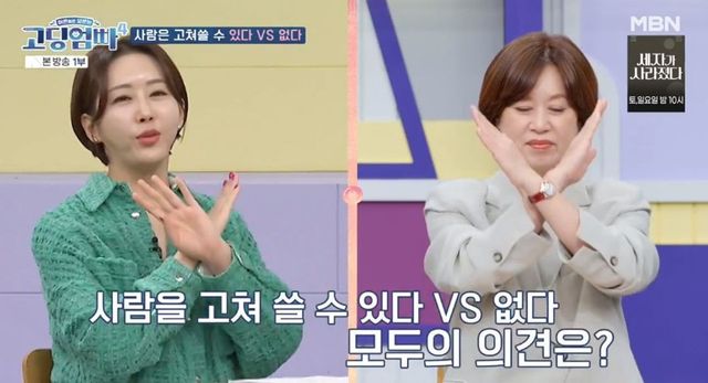 박미선은 같은 질문에 “사람을 어떻게 고쳐 쓰나. 난 고칠 수 없다에 100% 올인”이라고 강하게 말했다.