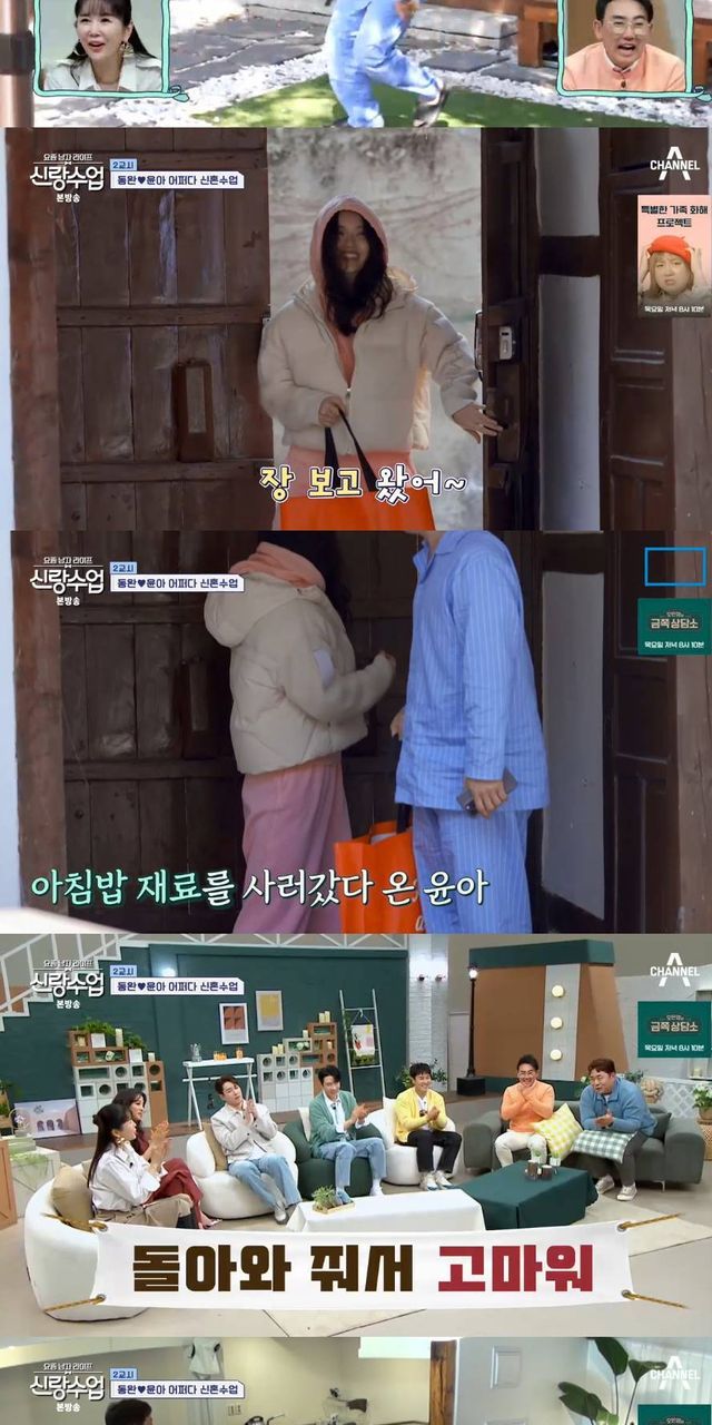 이내 숙소로 돌아온 서윤아는 "장 보고 왔다"고 말했다. 안심하는 표정을 지으며 밝게 웃는 김동완. 출연진들은 "돌아와줘서 고마워요"라고 반응해 웃음을 자아냈다.