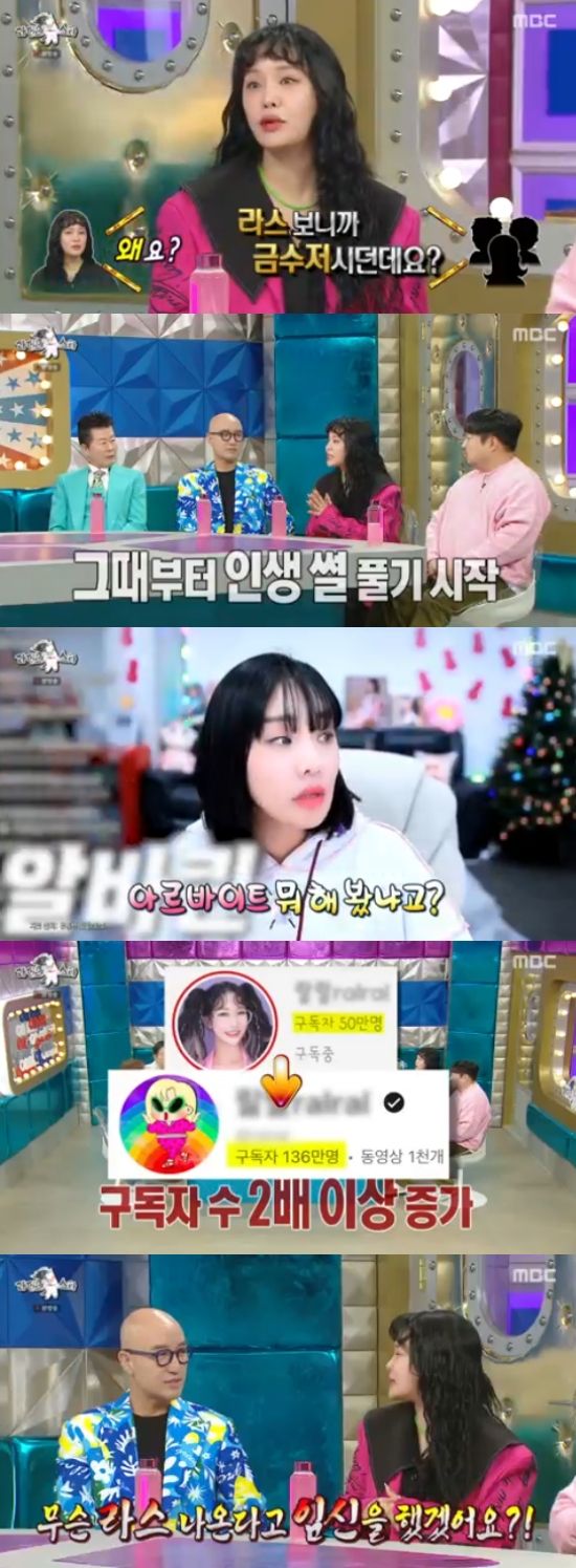 그리고 이날 랄랄은 지난번 '라스' 출연 이후로 '금수저' 논란에 휩싸였다고 말했다. 랄랄은 "엄마가 성악을 전공하셨다는 것과 해외 유학 당시의 이야기를 하니까 다들 금수저라고 생각을 하시더라"고 말문을 열었다.