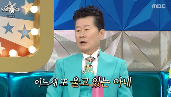 태진아는 17일 방송된 MBC 예능프로그램 ‘라디오스타’(이하 ‘라스’)에 게스트로 출연해 “아내가 예전엔 외국 공연도 같이 가자고 해도 안 갔는데 지금은 내가 계속 옆에 있기를 바란다”며 “(공연비로) 돈을 아무리 준다고 해도 내게는 아무 의미가 없다. 큰 의미가 없다”고 말했다.