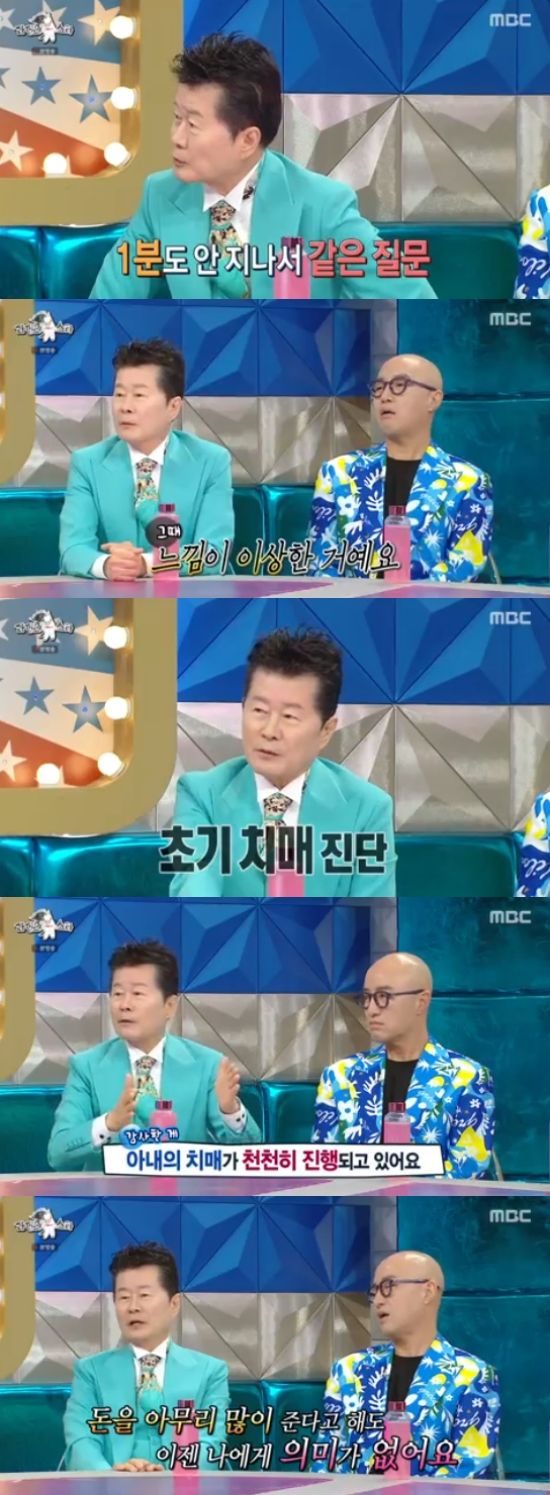 (엑스포츠뉴스 오수정 기자) '라디오스타'에서 태진아가 치매 투병 중인 아내를 향한 사랑을 드러냈다.