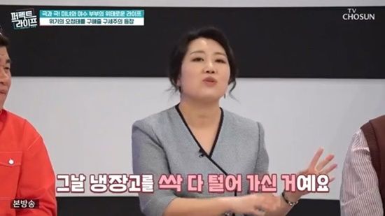 이어 "저희가 며칠 전에 건강검진을 받아야 해서 어머님에게 아이들을 봐달라고 부탁드렸는데, 그날 냉장고를 싹 다 털어가셨더라. 기분이 나빠서 비밀번호를 바꿨다"고 얘기했다.