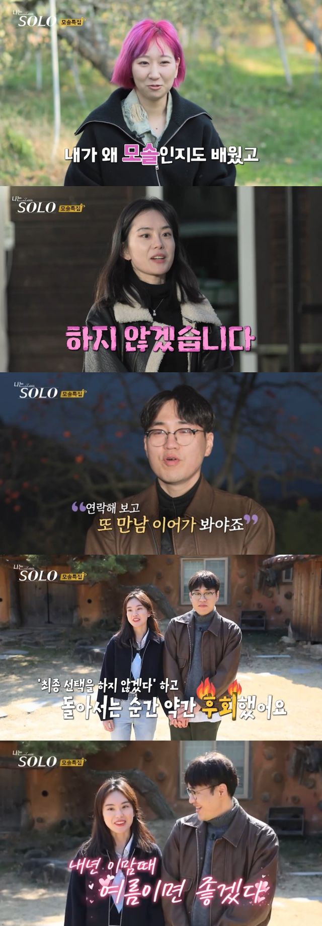 영자는 "알아가 보기에는 시간이 짧았고, 앞으로 커질 거라는 확신이 있지도 않았다. 내가 왜 모솔인지도 배웠다"고 인터뷰했다.
