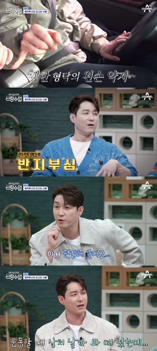 심형탁은 "운동할 때 상처날까봐 빼 놨다"며 반지를 빼 놓은 이유를 설명했다. 이에 이승철은 "상처가 나도 찢어져도 껴야 한다"고 조언했고 장영란 또한 "해야 한다"며 심형탁을 구박했다.