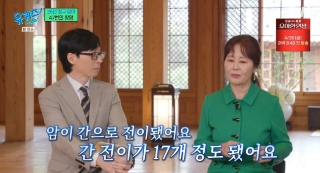 그런가하면, 현재 강희선의 상태는 어떨까. 강희선은 "지금은 추적 관찰중이다. 얼마전에 갔더니 깨끗했다"고 밝혔다. 그녀는 항암치료를 통해서 암세포 크기를 줄이고 전이 병변 17개, 간 65%를 제거하는 수술을 한 뒤 회복, 마침내 완치 판정을 받았다.