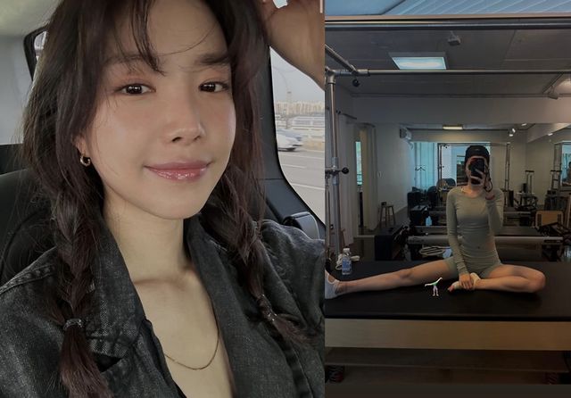 손나은은 핏한 운동복을 입고 군살 없는 몸매를 자랑했다.