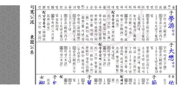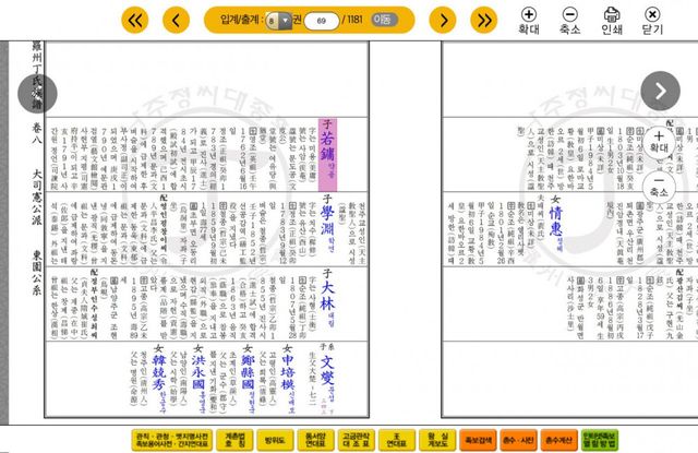 그럼 전자 족보를 한번 살펴보자(아래는 압해정씨, 나주 정씨 대종회에서 족보를 온라인에 옮긴 전자 족보이다).