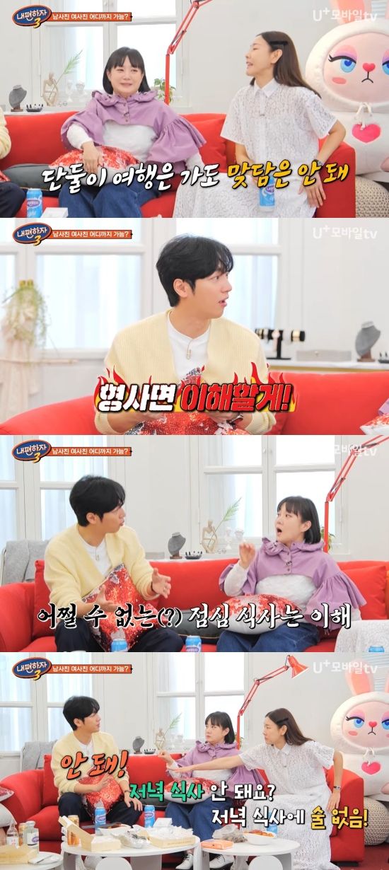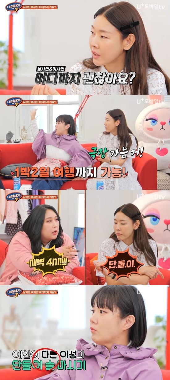 사연을 들은 한혜진은 "남사친, 여사친 어디까지 가능하냐"며 밥 먹는 것, 카페 가는 것, 밤에 술 먹는 것 등을 예시로 들었다. 이에 박나래는 "단 둘이 술마시는 거 괜찮다"며 "1박 2일 여행까지도 괜찮다"고 말하며 남다른 쿨함을 보여줬다.