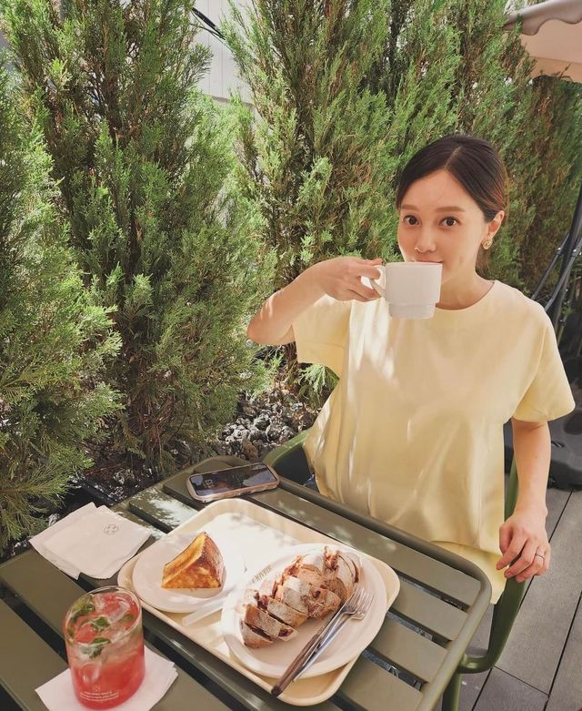 공개된 사진 속 아유미는 컨디션을 회복하고 밝은 미소를 지은 채 커피와 빵을 즐기고 있다.