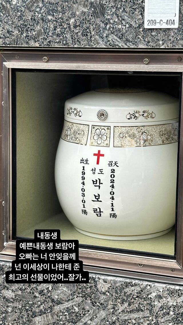 허각은 18일 자신의 인스타그램에 박보람의 납골당 유골함 사진을 올렸다.