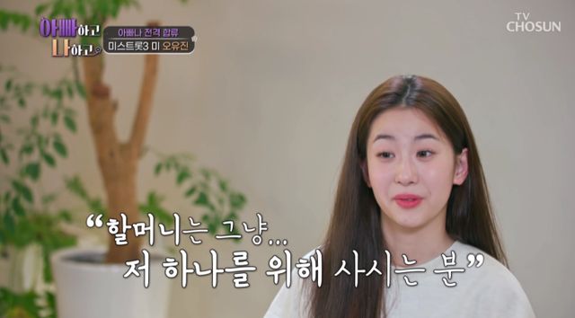 오유진의 할머니는 "내가 예쁜 것보다 인성을 제일 중시한 게, 다른 사람한테 '아빠 없는 자식, 할머니 손에서 자라서 그렇지'라는 소리 안 듣게 하려고 더 유진이한테 엄하게 대했다. 지나고 보니 그걸 다 받아주고, 잘 살아준 유진이가 제일 고맙다"라고 말하며 오유진에게 고마움을 전했다.
