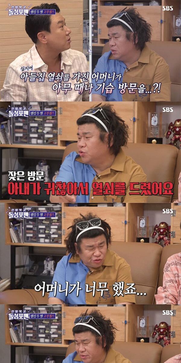 오정태는 "너무 자주 오니까 아내가 귀찮아서 열쇠를 줬다"며 "엄마가 너무 자주 오시니까 제가 '아내가 너무 싫어한다. 미리 전화하고 오셔라'라고 했더니 현관 앞에서 전화를 하시더라. 엄마가 '네가 전화하라 해서 전화했다'하고는 문을 벌컥 열고 들어온다. 어머니가 해도해도 너무 했다"고 말했다.