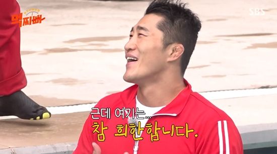 김동현은 "튀긴 걸 잘 안 먹는데"라고 구시렁거렸고 치킨을 뒤적거리던 끝에 닭가슴살을 찾아내며 덩치들과 다른 선택으로 이목을 집중시켰다.