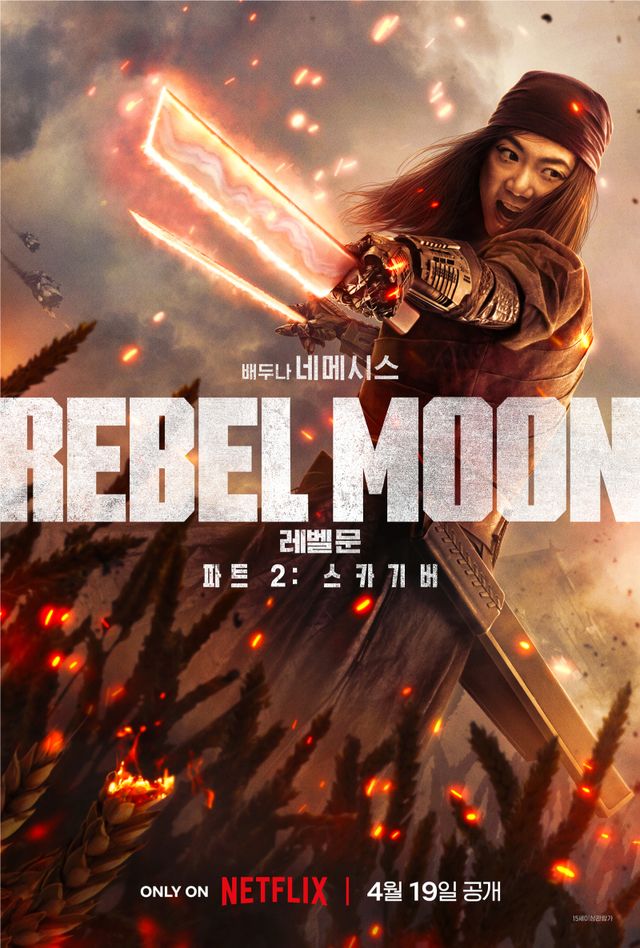 ‘레벨 문’은 평화로운 변방 행성에 지배 세력의 군단이 위협을 가하자 신분을 숨기고 마을에서 조용히 살던 이방인 코라(소피아 부텔라)와 여러 행성의 아웃사이더 전사들이 모여 은하계의 운명을 건 전투에 나서게 되는 이야기를 그린 작품이다. 지난해 12월 파트1이 공개된 데 이어 이날 파트2가 공개된다. 배두나는 검술사 네메시스 역을 맡아 독보적인 카리스마를 보여준다.
