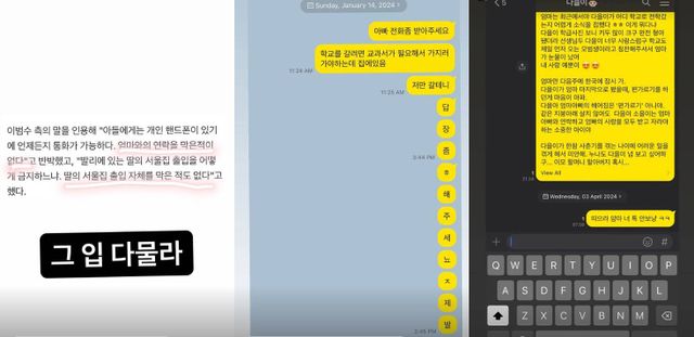 해당 캡쳐본에 따르면 이윤진의 딸은 이범수에게 "아빠 전화 좀 받아주세요" ,"학교를 가려면 교과서가 필요해서 가지러 가야 하는데 집에 있음", "저만 갈 테니 답장 좀 해주세요 제발"이라고 카카오톡을 보냈고, 이범수는 확인했으나 답장하지 않았다.