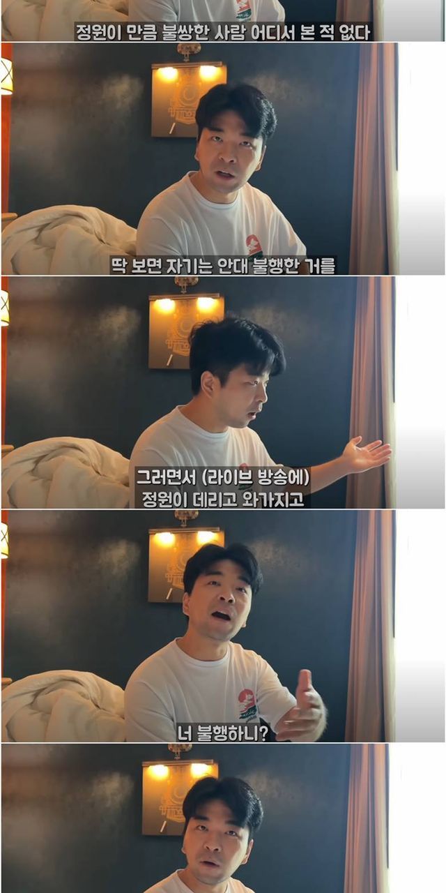 조튜브는 정원에게 "세상에서 가장 불행한 정원 씨 아니냐. 요즘 가장 불행하시다던데"라고 물었다.