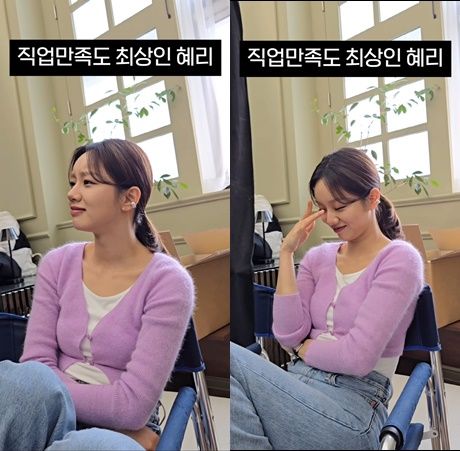 이어진 촬영에서 혜리는 행복한 표정으로 햄버거를 베어 물며 "직업 만족도 최상"인 모습을 보여줬다.