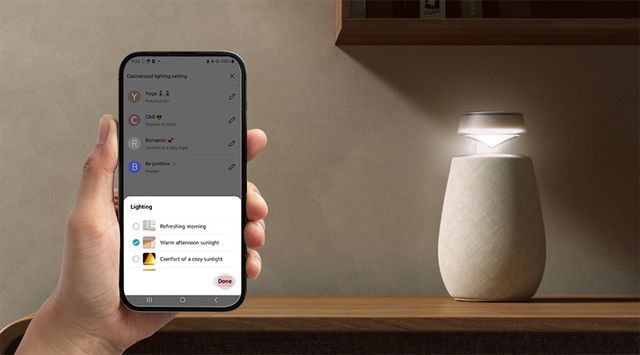 조명 전문가가 엄선한 9가지 기본 조명으로 분위기를 바꿀 수 있으며, 무엇보다 편안한 분위기 속 음악 듣기 딱 좋은 '캔들 조명' 효과를 빼놓을 수 없다. 휴식 모드를 설정한 뒤 '캔들 효과'까지 더한다면 마치 촛불이 일렁이는 듯한 모습이다.