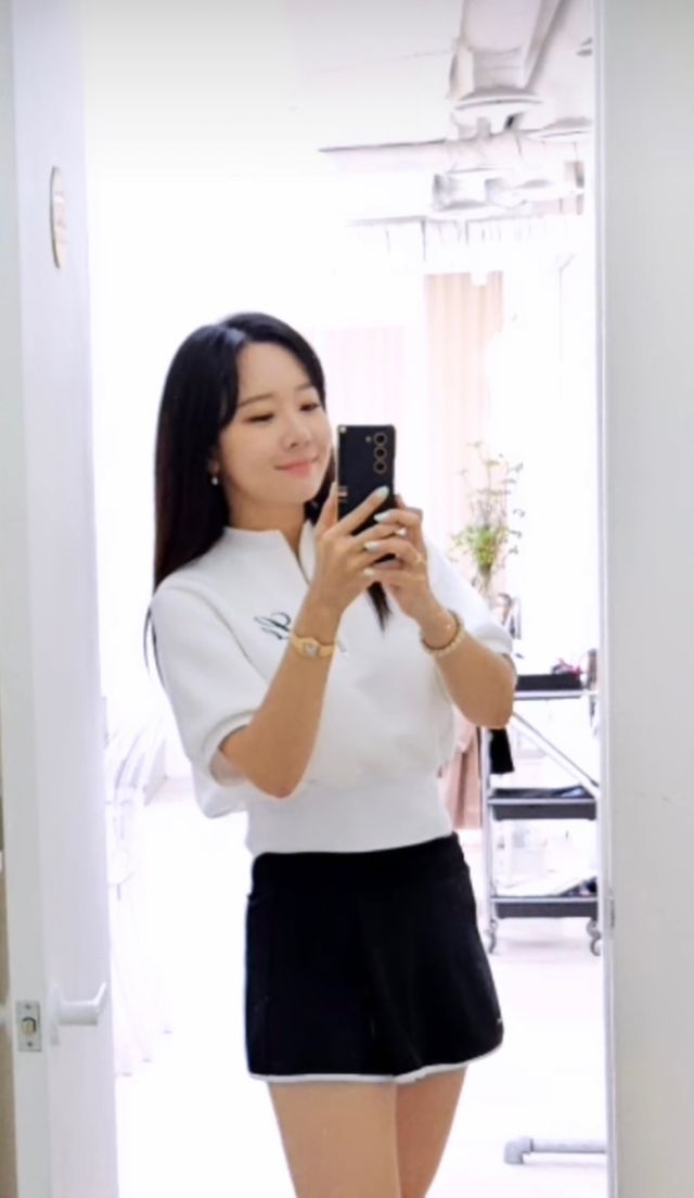 또 소유진은 테니스복을 입고 군살 없는 몸매를 자랑하며 거울샷을 촬영했다.