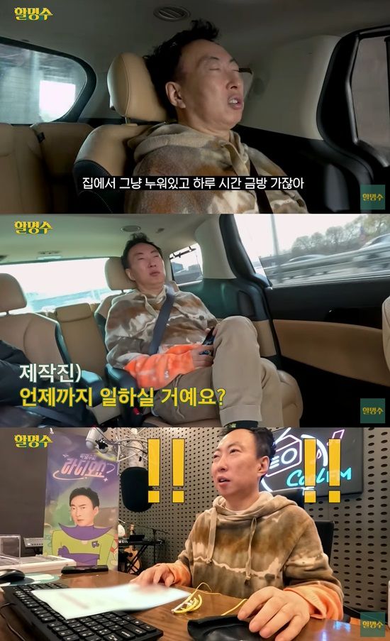 이에 박명수는 "매일 하기 싫지. 하기는 다 싫지만 안 하면 뭐할 거냐. 집에서 누워 있고 하면 시간이 금방 가지 않나 일해야지"라고 답해 공감을 샀다.
