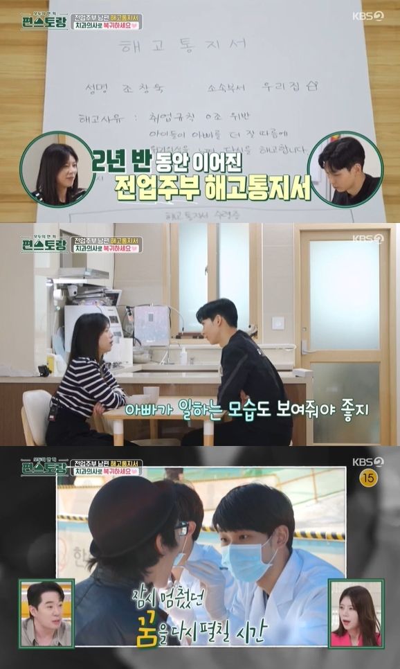 양지은의 남편이 가족을 위해 육아에 전념한 시간을 뒤로하고, 현업인 치과의사로 복귀할 시기가 된 것.
