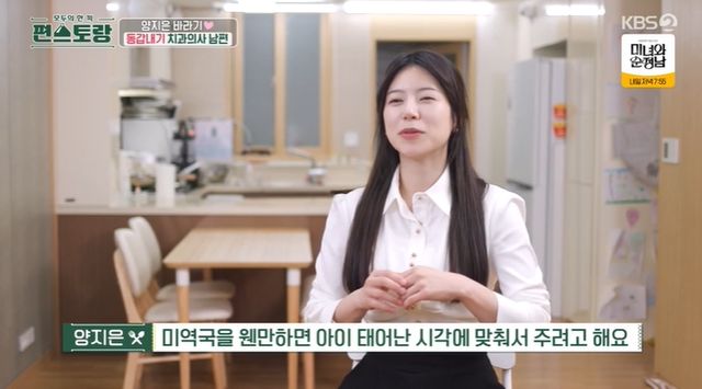 치과의사인 양지은의 남편은 육아를 위해 오랜 기간 휴직한 뒤 전업주부로 지내왔다.