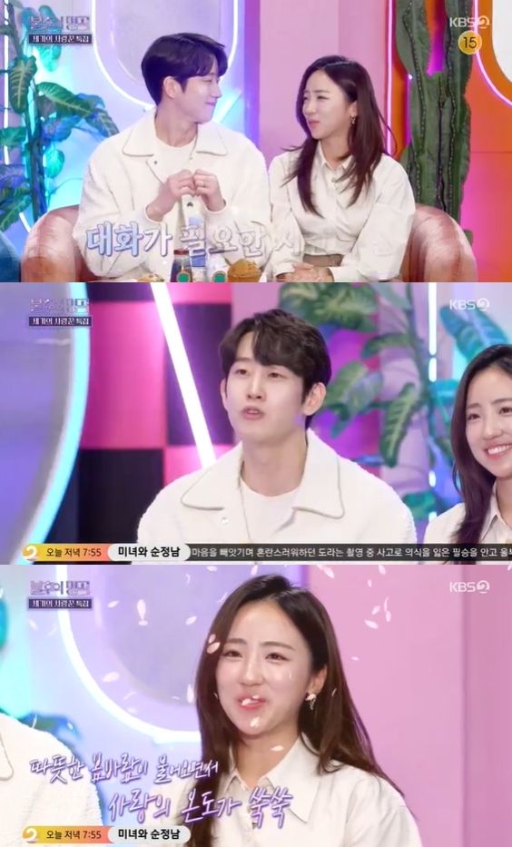 이어 배혜지는 "대놓고 연애를 할 순 없으니 보물찾기를 했다. 간식을 챙겨주고 싶으면 어느 날은 혈압 측정기 앞에 숨겨놓고, 또 다른 날엔 녹음실 앞에 놔뒀다. 그렇게 보물을 찾게 했다"며 꿀 떨어지는 비밀 연애 당시 에피소드를 공개했다.
