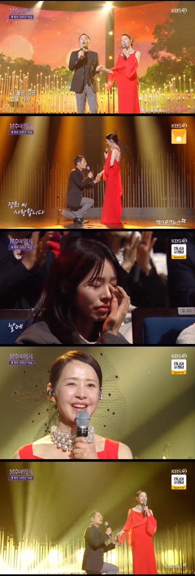 김태현은 노래 말미 무릎을 꿇고 서정희의 손에 입을 맞췄다. 이어 "정희 씨 사랑합니다"라며 사랑을 드러냈고 서정희는 울먹였다. 딸 서동주 역시 눈물을 흘렸다.