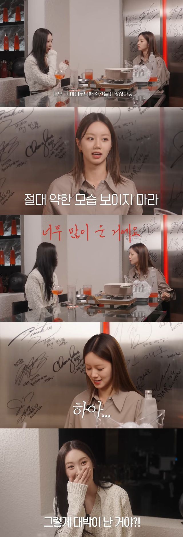 선미가 과거 혜리가 출연했던 예능 '진짜 사나이'의 '이이잉' 애교 장면을 언급하자 혜리는 10년 만에 비하인드를 풀었다.