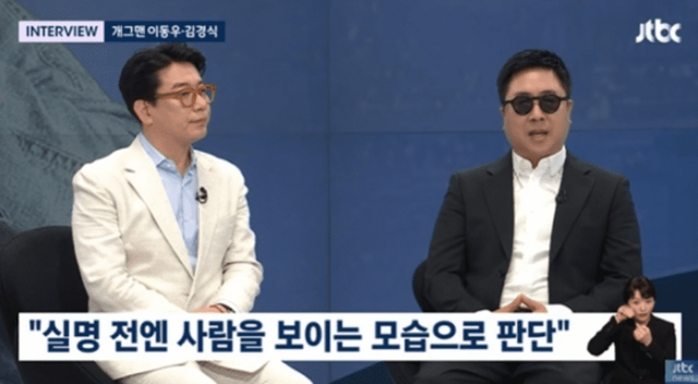 코미디언 이동우와 김경식이 '장애인의 날'을 맞으며 JTBC 뉴스룸에 출연해 많은 이들의 시선을 사로잡았습니다.