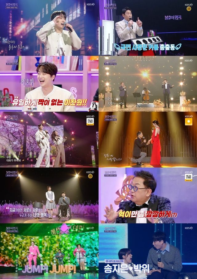 지난 20일(토) 방송된 KBS2 ‘불후의 명곡’ 654회는 ‘세기의 사랑꾼 특집’으로 꾸며졌다. 이용식♥이수민♥원혁, 배혜지♥조항리, 서정희♥김태현, 송지은♥박위, 김혜선♥스테판이 차례로 무대에 올라 달콤하고 싱그러운 무대를 선보였다.