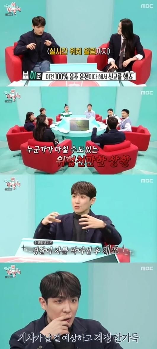 이에 이준은 "헬스 끝나고 나왔는데 앞 차가 비틀대고 뭔가 이상했다"며 "그래서 따라가 봤다. 이건 100% 음주 운전이다 싶어서 신고했다"고 당시 상황을 떠올렸다.