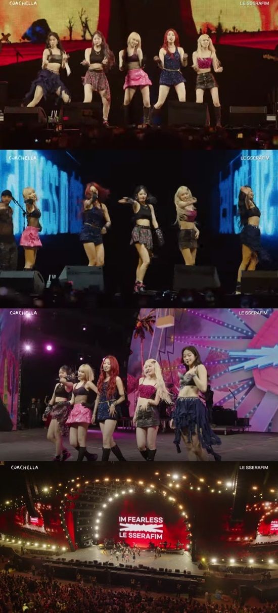 20일(이하 현지시간) 르세라핌은 ‘코첼라 밸리 뮤직 앤드 아츠 페스티벌’(Coachella Valley Music and Arts Festival, 이하 ‘코첼라’)의 사하라(Sahara) 스테이지에서 두 번째 무대를 펼쳤다.