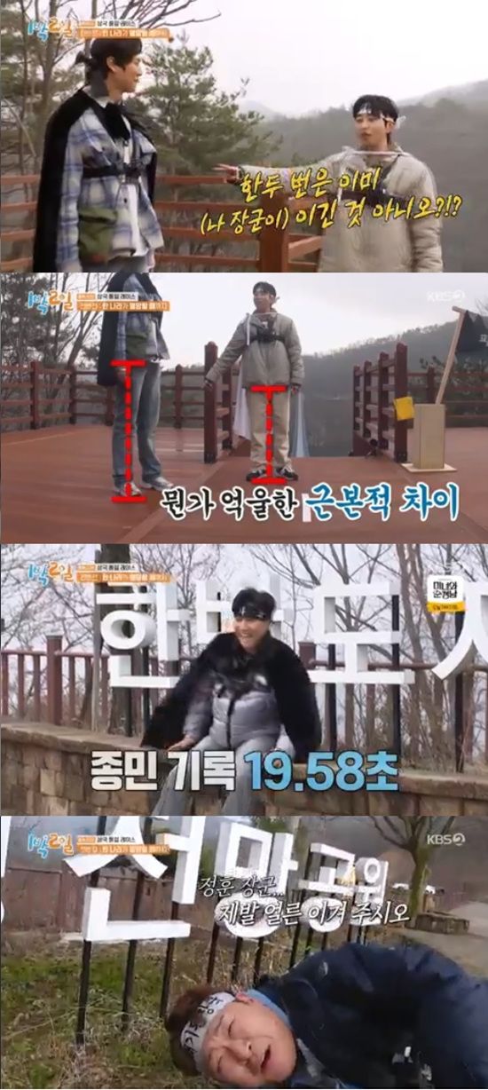 21일 방송된 KBS 2TV '1박 2일 시즌4'에서는 연정훈, 김종민, 문세윤, 딘딘, 나인우, 유선호의 충북 진천 여행기가 전파를 탔다.