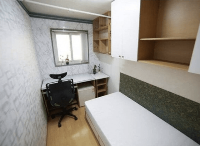 우리는 이걸 쪽방이라고 부름 누워서 TV를 볼 수 있고 모텔에서 볼법한 냉장고도 있음