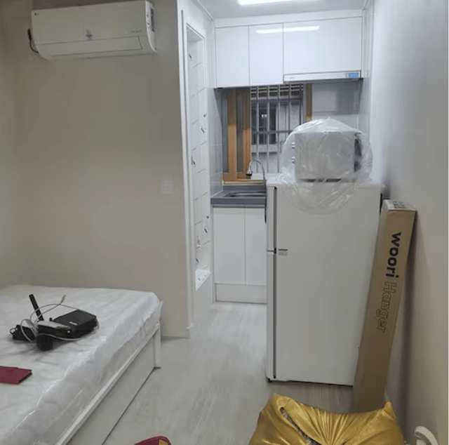 주방, 세탁기 당연히 없고 샤워도 공용으로 해야함 변기는 있을수도 있음