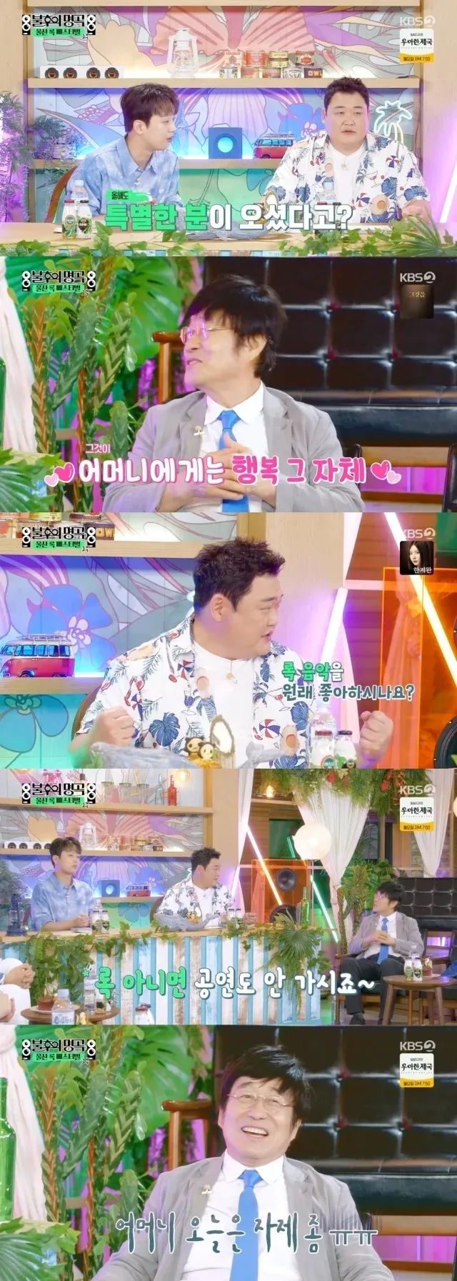 MC 김준현이 “김창완 씨의 록 스피릿은 어머니로부터 왔다는 얘기가 있다”라고 하자 김창완은 “오늘 모시고 왔다. 94세신데”라고 말해 놀라움을 자아냈다.