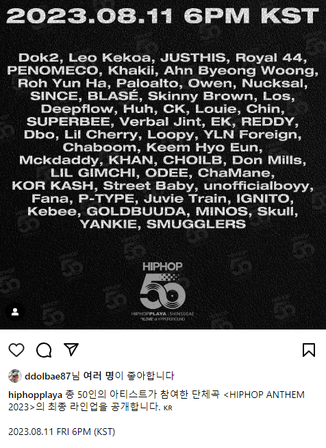 그래서 한다는 게 50명 참여하는 한국힙합 50년 기념 단체곡에
