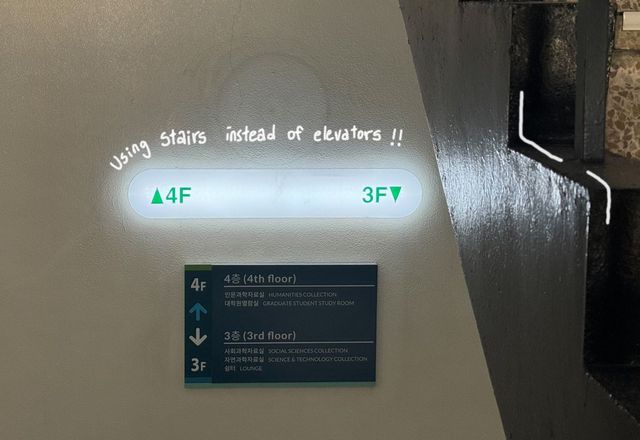 우리는 생각보다 꽤 자주 엘리베이터를 이용한다. 엘리베이터 1회 사용 시 약 30Wh의 에너지가 소모되며 12.7g의 탄소발자국이 발생한다. 고층을 이동하는 경우가 아니라면 계단을 이용해보자. 탄소발자국 저감은 물론 건강까지 챙길 수 있다.