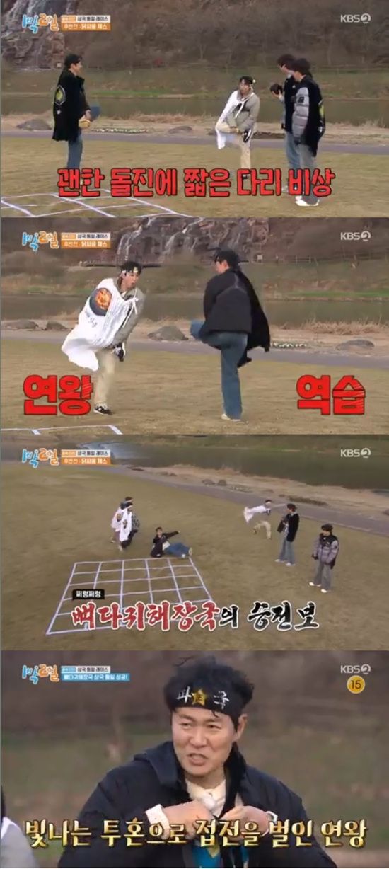 이날 멤버들은 삼국 통일 레이스 전반전을 마친 뒤 시래기 된장국이 멸망하면서 세 나라에서 두 나라로 재정비했다.